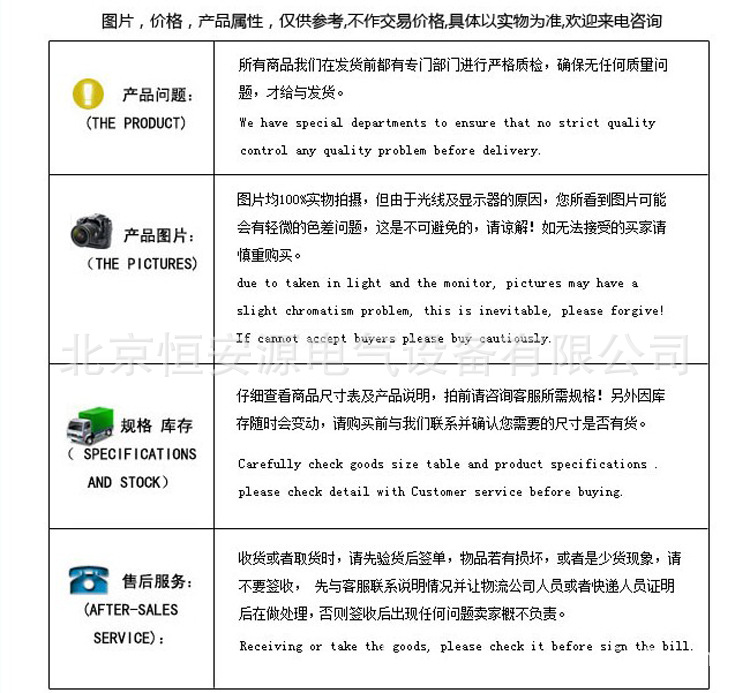 1.我公司對生產(chǎn)的全部產(chǎn)品實行“三包”,保證產(chǎn)品采用較佳材料和一流工藝,符合合同規(guī)定的質(zhì)量﹑規(guī)定和性能要求。保證其合同設(shè)備經(jīng)過正確安裝﹑合理操作和維護保養(yǎng),在合同設(shè)備使用期內(nèi)運轉(zhuǎn)良好,在規(guī)定的質(zhì)量保證期內(nèi),對由于設(shè)計工藝或材料的缺陷而造成的故障負(fù)責(zé),免費負(fù)責(zé)修理或更換有缺陷的電器元件。