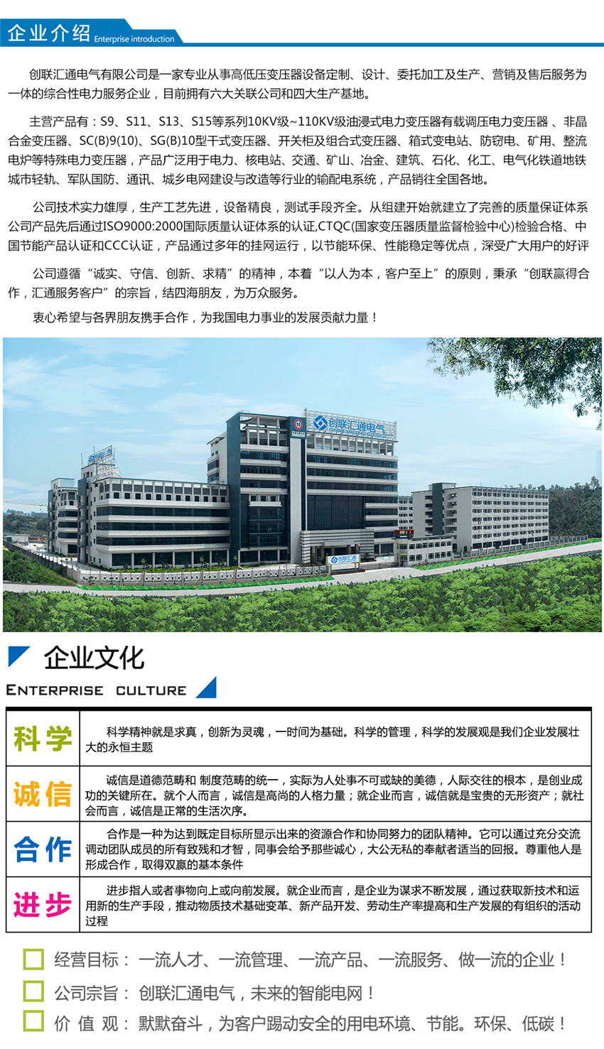 高壓側一般采用負荷開關,也可采用真空斷路器,并且有齊全的防誤操作功能。還可選配:XGN20-12L 六氟化硫環網柜,HXGN15A、HXGN17等環網開關設備。變壓器可采用油浸式變壓器,全密封變壓器,也可采用于式變壓器。變電站保護性能完善,操作方便,高低壓計量可供選擇,可根據用戶要求配備門動無工率補償裝置。